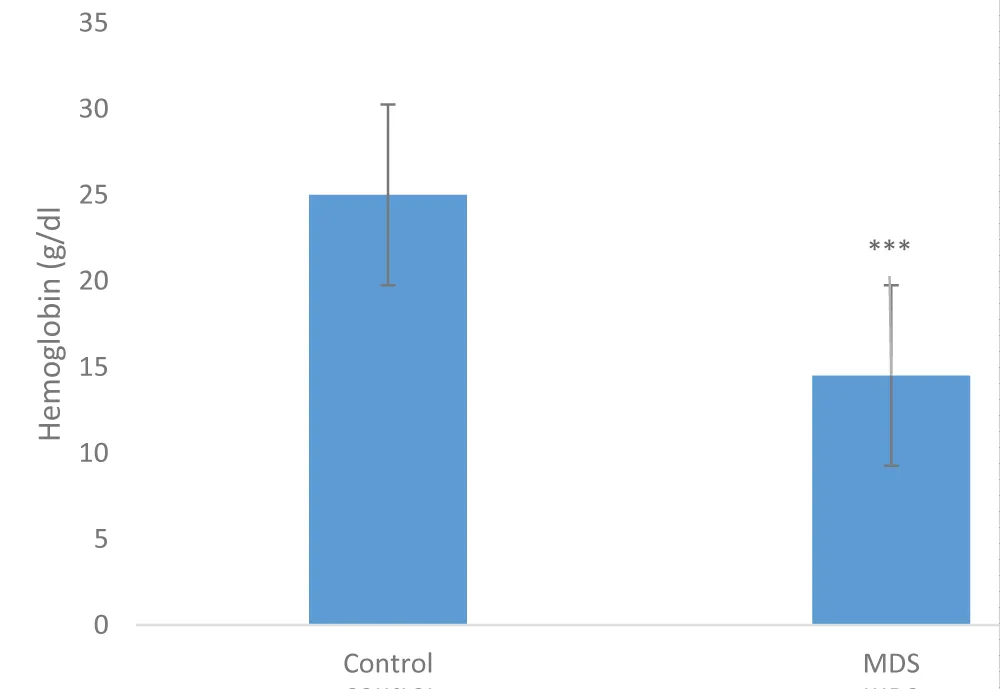 Figure 2: Hemoglobin distribution in patients and controls (***p < 0.001), n = 16.